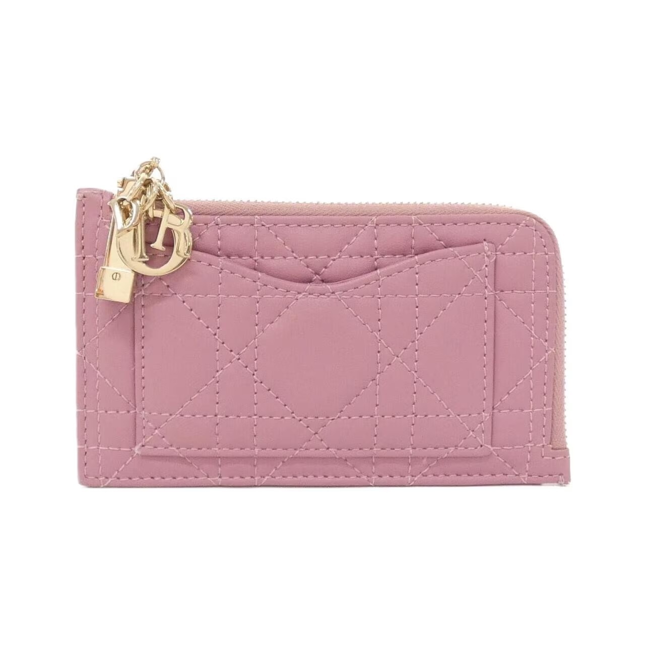 ダイアナ元妃が愛用していたことで知られる「レディ ディオール」シリーズの小銭入れ。ふっくらとした可愛らしい質感のカナージュステッチ(格子柄)と、ディオール(Dior)のアルファベットを型どったメタルチャームがエレガントで華やかな印象です。4枚のカードスロットとファスナー式のコインスペースがあり、使い勝手も申し分ないでしょう。