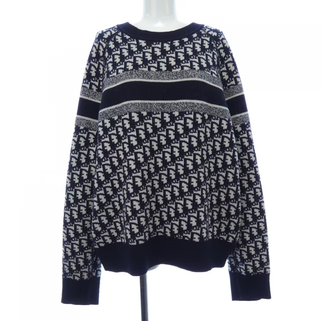 こちらはディオールのロゴがひしめくアイコニックなニット。ネイビー×ホワイトの配色が上品で、リラックス感のあるシルエットが大人のカジュアルコーデにぴったりです。デニムやスカートと合わせてラグジュアリーな着こなしを楽しめます。