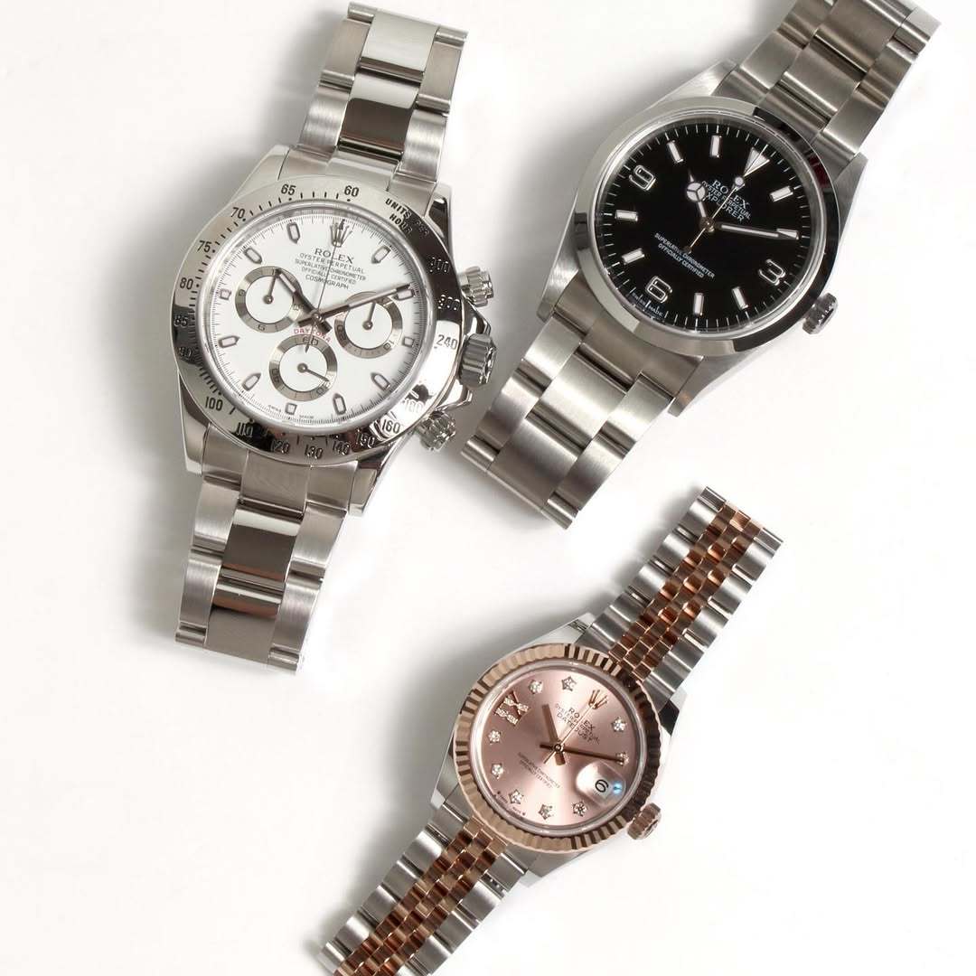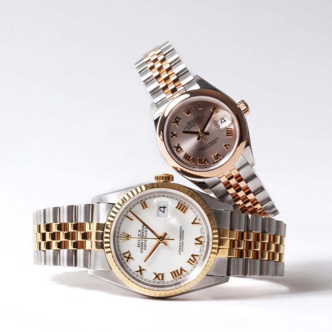 ロレックスらしいクラシカルでプレーンなデザインや、ダイヤモンドで飾られた10Pダイヤモデル、ルビーを用いたモデルなどデザインの幅が広く、シーンによって使い分けられます。素材もステンレスやゴールドとのコンビなどさまざまで、予算に応じて選べます。
