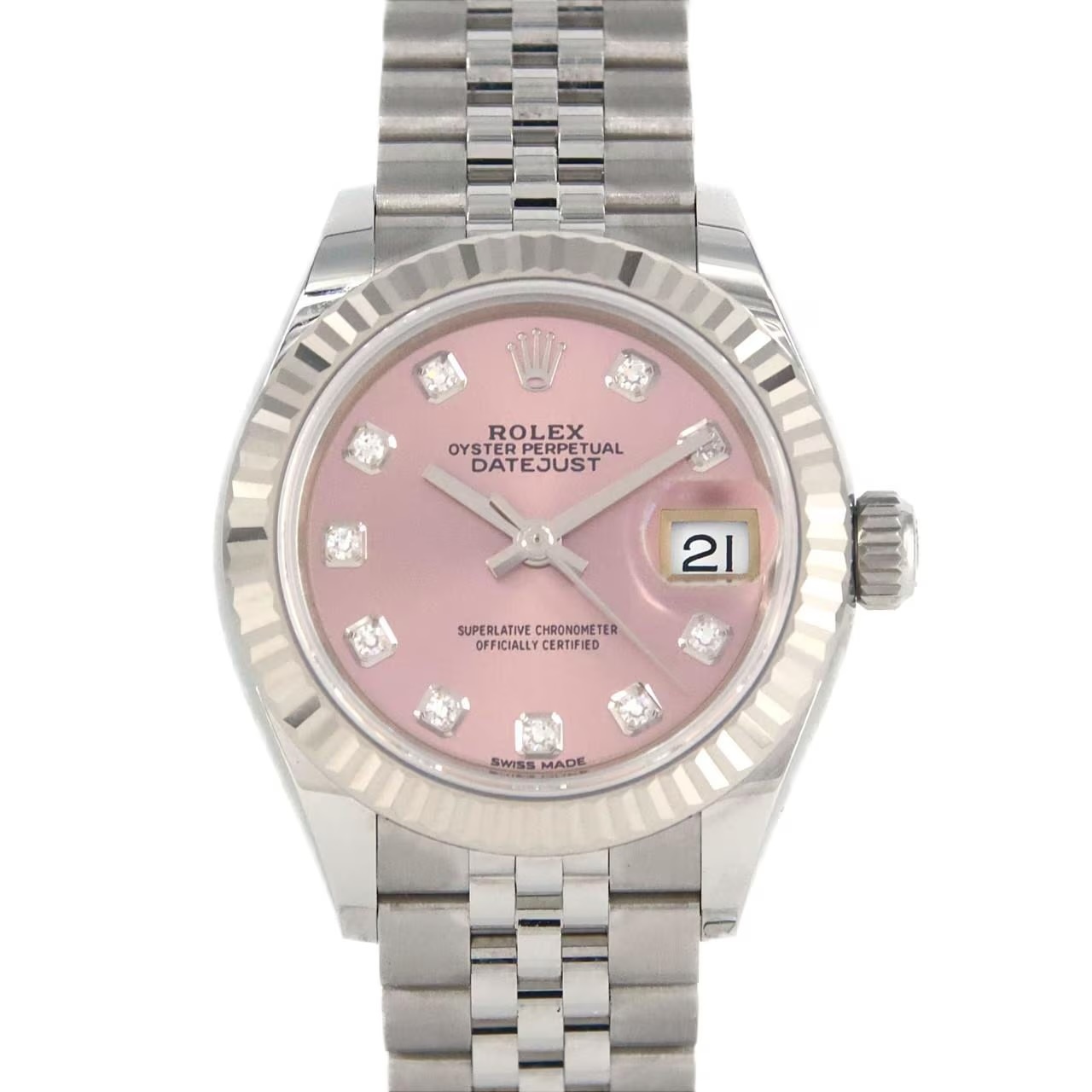 デイトジャスト 28mm/ピンク文字盤(10Pダイヤモンド)