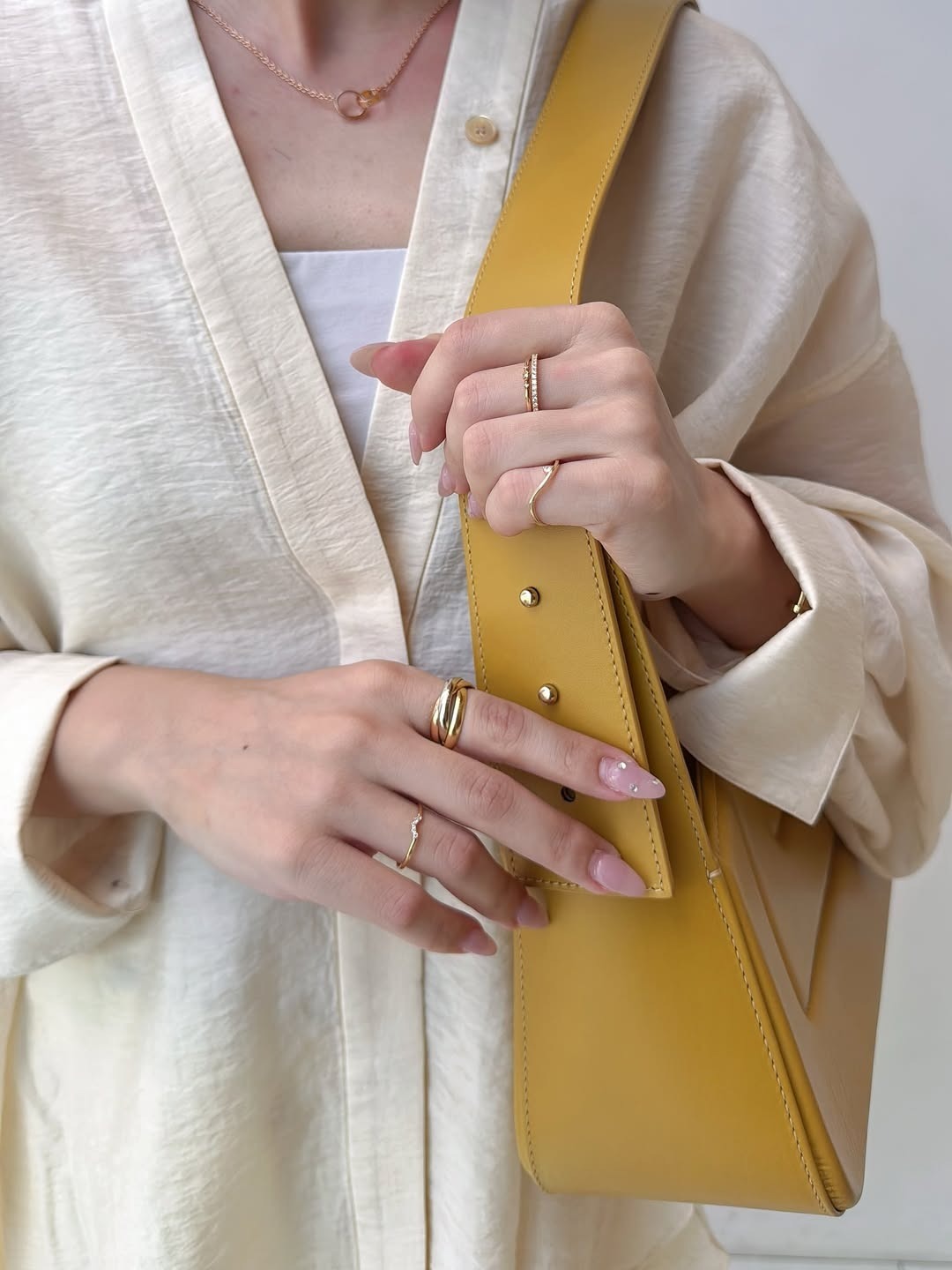 ラージはトリニティの中でも幅が太めのタイプ。着用するだけで手元にボリューム感や存在感が加わります。単独で着けて楽しみたい人、華やかさを楽しみたい人にもマッチしやすいデザインです。