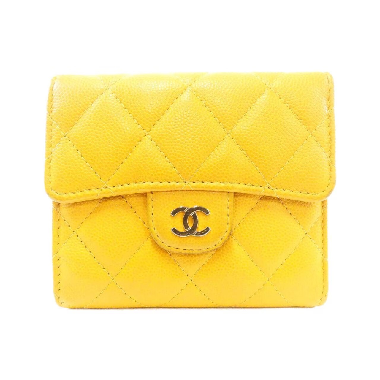 シャネル(CHANEL)の伝統的なチェーンバッグ「2.55」をモチーフにつくられたライン「タイムレスクラシック」の二つ折り財布です。明るくはっきりとした黄色は金運上昇はもちろん、持っているだけで元気が出そうですね。