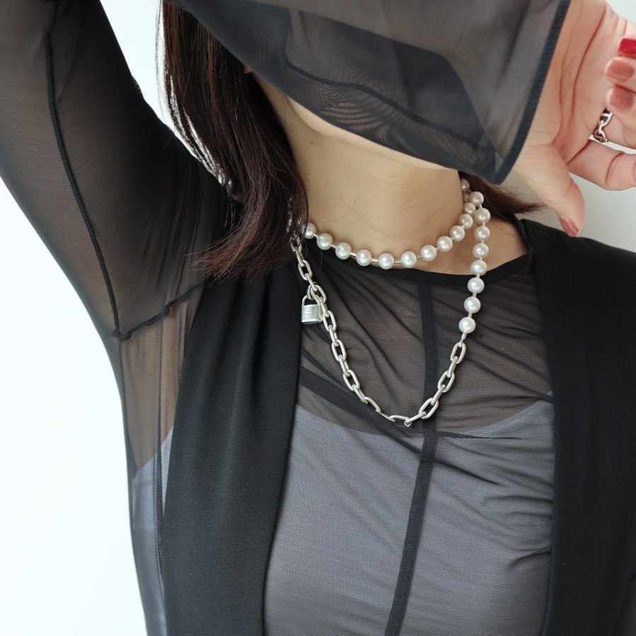 トップが胸元のあたりにくる長めのタイプです。タートルネックとの組み合わせや、プリンセスタイプとの重ね着けにぴったりです。